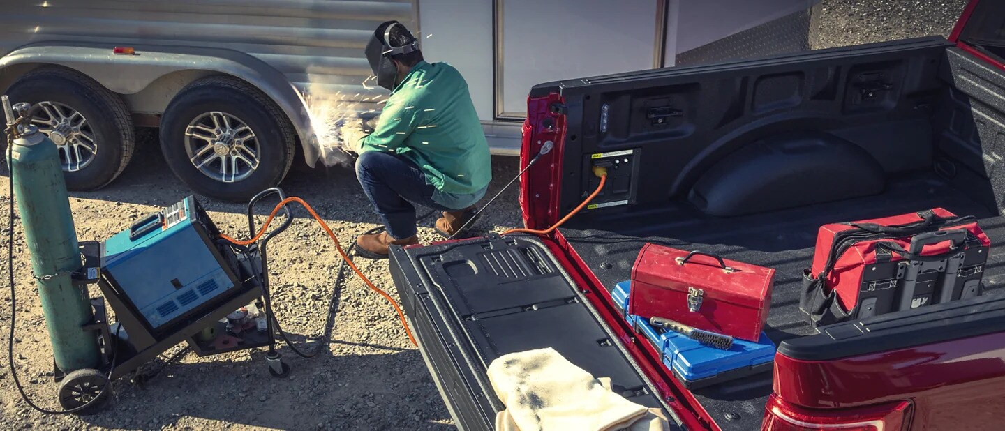 Jump-start your job site or campsite with the class-exclusive* Pro Power Onboard, that delivers exportable power and the ability to use your truck as a mobile generator. Use one of three available outputs in the cab and box - 2.0kW, 2.4kW and the massively powerful 7.2kW. You can then monitor and track the wattage via the SYNC® 4 screen or FordPass™ App.