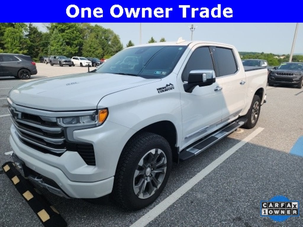 Clean CARFAX. CARFAX One-Owner. Apple Carplay, Automatic Emergency Braking, Automatic Headlights, Automatic High Beams, Blind Spot Warning / Alert, Bluetooth, Clean Carfax, Forward Collision Warning, Heads Up Display, Heated Steering Wheel, Leather, Navigation / GPS, One Owner, Power Driver's Seat with Height Adjustable Lumbar, Rear Camera, Rear Cross Traffic Warnings, Silverado 1500 High Country, EcoTec3 6.2L V8, 4WD, 10-Way Power Driver Seat w/Lumbar, 10-Way Power Passenger Seat Adjuster w/Lumbar, 12.3" Multicolor Reconfigurable Digital Display, 120-Volt Bed Mounted Power Outlet, 120-Volt Interior Power Outlet, 15" Diagonal Multicolor Head-Up Display, 2 USB Data Ports, 2nd Row Heated Outboard Seats, Adaptive Cruise Control, Auto-Dimming Inside Rear-View Mirror, Auto-Locking Rear Differential, Bed View Camera, Bluetooth® For Phone, Body-Color Painted Mirror Caps, Chevrolet Connected Access Capable, Chevytec Spray-On Black Bedliner, Chrome Assist Steps, Chrome Recovery Hooks, Color-Keyed Carpeting Floor Covering, Deep-Tinted Glass, Driver Memory, Dual Exhaust w/Polished Outlets, Dual Rear USB Ports (Charge Only), Electric Rear-Window Defogger, Electrical Steering Column Lock, Floor Mounted Center Console, Front Carpeted Floor Mats, Front LED Fog Lamps, Front Rain-Sensing Wipers, HD Surround Vision, Heated Driver & Front Outboard Passenger Seats, Heated Steering Wheel, High Capacity Suspension Package, Hitch Guidance, Hitch Guidance w/Hitch View, In-Vehicle Trailering System App, Integrated Trailer Brake Controller, Keyless Open & Start, LED Cargo Area Lighting, OnStar & Chevrolet Connected Services Capable, Outside Heated Power-Adjustable Mirrors, Perimeter Lighting, Power Front Passenger Windows w/Express Up/Down, Power Front Windows w/Driver Express Up/Down, Power Rear Windows w/Express Down, Power Sliding Rear Window w/Rear Defogger, Power Tailgate, Power Tilt & Telescoping Steering Column, Preferred Equipment Group 3LZ, Rear Camera Mirror, Rear Carpeted Floor Mats, Rear Cross Traffic Braking, Rear Pedestrian Alert, Rear Wheelhouse Liners, Remote Vehicle Starter System, Safety Alert Seat, SiriusXM w/360L, Standard Tailgate, Steering Wheel Audio Controls, Technology Package, Theft Deterrent System (Unauthorized Entry), Trailer Camera Provisions, Trailer Side Blind Zone Alert, Trailering Package, Ultrasonic Front & Rear Park Assist, Universal Home Remote, Up-Level Rear Seat w/Storage Package, Ventilated Driver & Front Passenger Seats, Wi-Fi Hot Spot Capable, Wrapped Steering Wheel.
