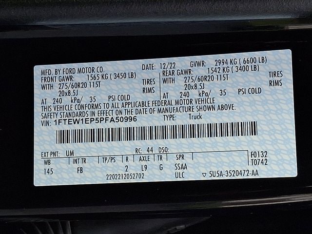 2023 Ford F-150 XLT F-150 XLT, 4D SuperCrew, 2.7L V6 EcoBoost, 10-Speed Automatic, 4WD, Black Metallic, Black Cloth, 10-Way Power Driver & Passenger Seats, 2-Bar Style Grille w/Chrome 2 Minor Bars, 8" Productivity Screen in Instrument Cluster, Accent-Color Step Bars, Auto-Dimming Rear-View Mirror, Black 2-Bar Style Grille w/Black Surround/Accents, Body-Color Door & Tailgate Handles, Body-Color Front & Rear Bumpers, Box Side Decals, Bright Polished Step Bars, Chrome Door & Tailgate Handles w/Body-Color Bezel, Chrome Single-Tip Exhaust, Class IV Trailer Hitch Receiver, Dual Zone Electronic Automatic Temperature Control, Equipment Group 302A High, GVWR: 6,470 lbs Payload Package, Heated Front Seats, Intelligent Access w/Push Button Start, LED Reflector Headlamps, LED Sideview Mirror Spotlights, Onboard 400W Outlet, Power Glass Heated Sideview Mirrors, Radio: AM/FM SiriusXM w/360L, Rear Under-Seat Storage, Remote Start System w/Remote Tailgate Release, SecuriCode Drivers Side Keyless-Entry Keypad, SYNC 4 w/Enhanced Voice Recognition, Unique Sport Cloth 40/Console/40 Front-Seats, Wheels: 18" 6-Spoke Machined Aluminum, Wheels: 18" Chrome-Like PVD, Wrapped Steering Wheel, XLT Chrome Appearance Package, XLT Sport Appearance Package, Zone Lighting.