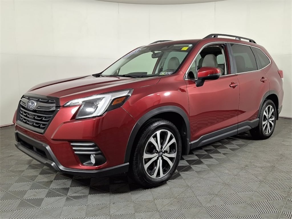 2023 Subaru Forester Limited Accident Free, Android Auto, Automatic Emergency Braking, Automatic High Beams, AWD, Blind Spot Warning / Alert, Bluetooth, Leather / Leatherette, Local Trade, Apple Car Play, Rear Back-up Camera, Forester Limited, AWD, Crimson Red Pearl, 3.70 Axle Ratio, 6 Speakers, AM/FM radio: SiriusXM, Auto High-beam Headlights, Auto-Dimming Mirror w/Compass & HomeLink, Automatic temperature control, Brake assist, CD player, Electronic Stability Control, Emergency communication system: STARLINK Safety and Security (Subscription Required), Exterior Parking Camera Rear, Front dual zone A/C, Front fog lights, Fully automatic headlights, Heated Front Bucket Seats, Illuminated entry, Leather Shift Knob, Outside temperature display, Overhead console, Panic alarm, Passenger vanity mirror, Perforated Leather-Trimmed Upholstery, Power driver seat, Power Liftgate, Power moonroof: Panoramic, Radio: Subaru Starlink 8.0" Multimedia Plus System, Remote keyless entry, Security system, Standard Model, Steering wheel mounted audio controls, Tachometer, Telescoping steering wheel, Tilt steering wheel, Trip computer, Wheels: 18" x 7.0 J Black Machine Finish Alloy.